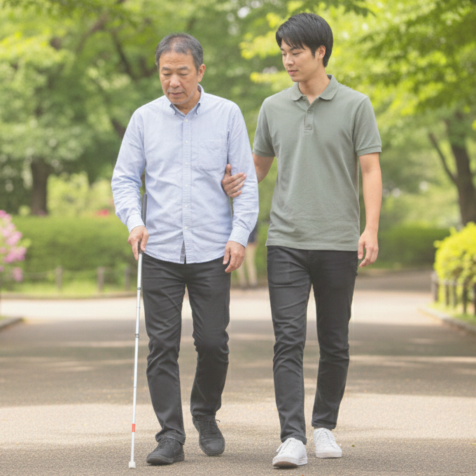 - 移動のサポート:段差や人混み、信号の変化など、周囲の状況を的確にお伝えしながら、安全に目的地までご案内します。